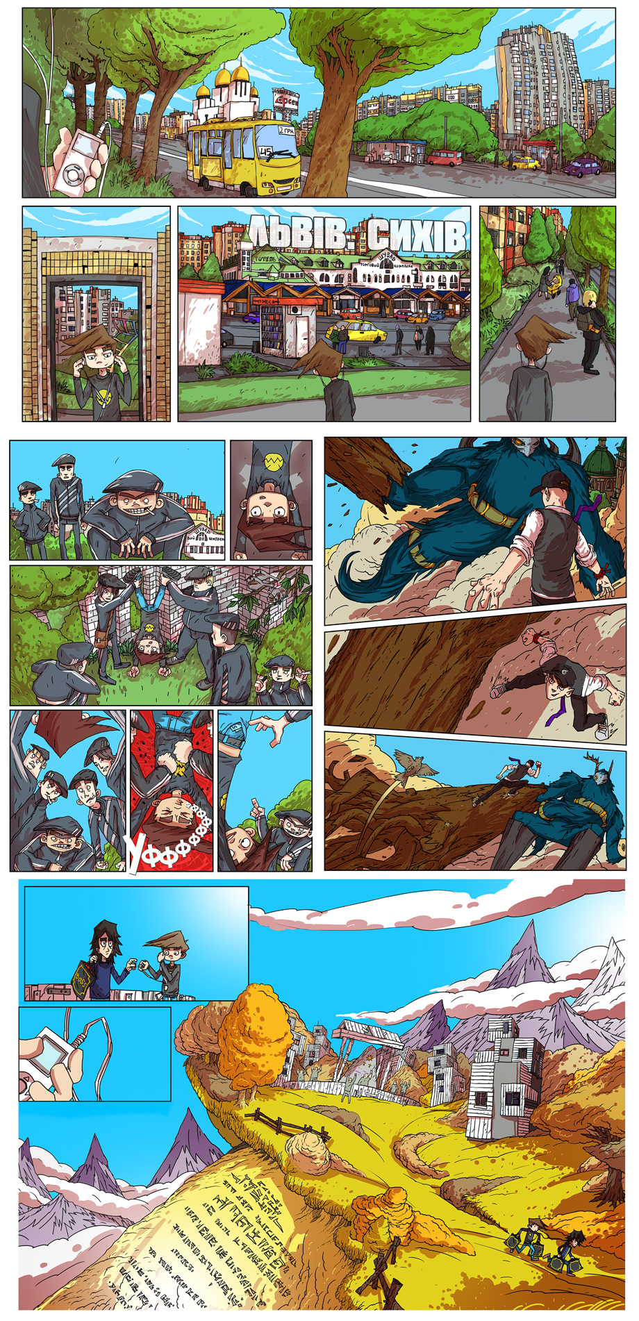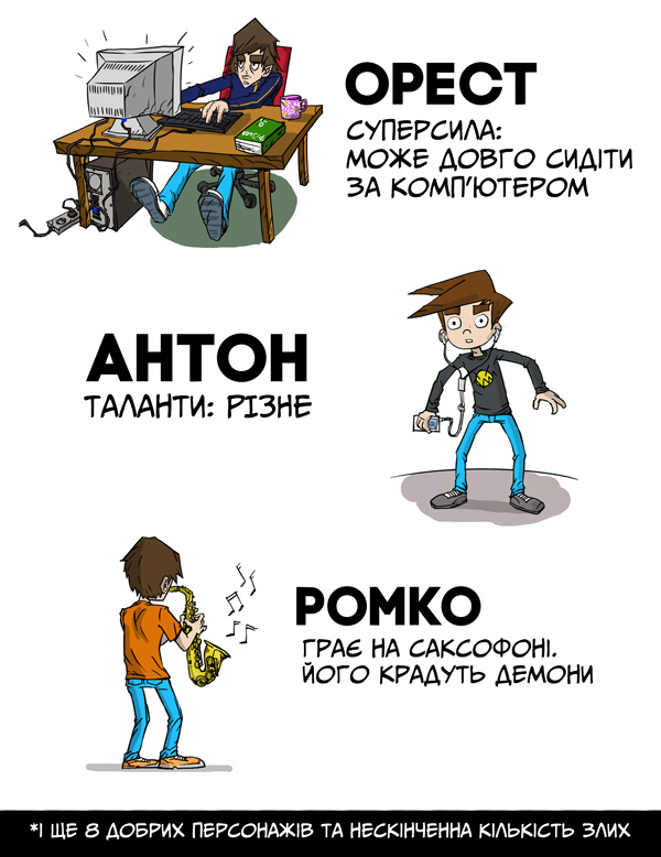 Комікс ми створювали 1 рік, вдома на домашньому комп’ютері. Все починається у Львові на Сихові (один із спальних районів міста). Злі демони викрадають Ромка - друга Антона і Ореста та втікають через телепорт у паралельний світ. І всі знають, що їх там чекає. Нічого хорошого.